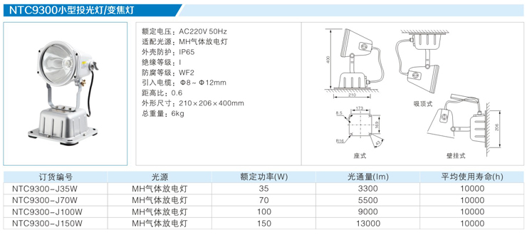 產品中心 固定式專業燈 NTC9300小型投光燈/變焦燈