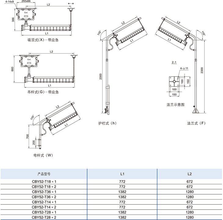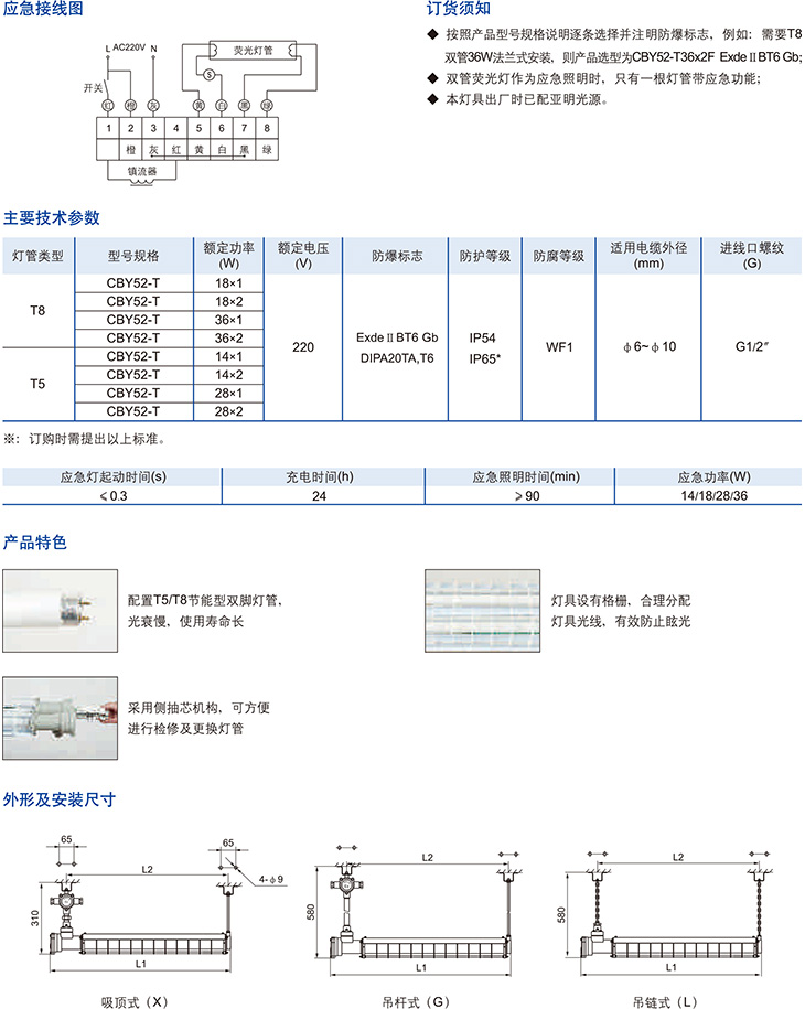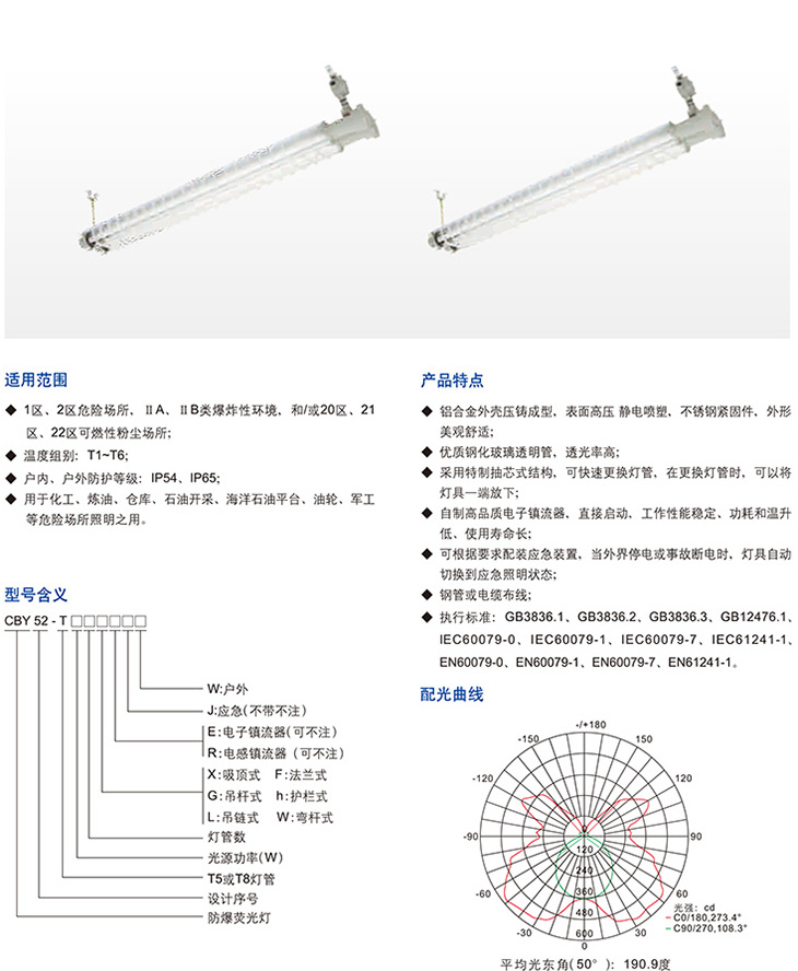 產品中心 防爆燈具 CBY52-T系列防爆熒光燈(T5、T8燈管)(ⅡB、DIP)