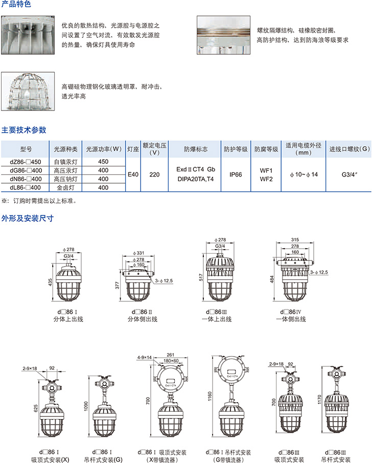 產品中心 防爆燈具 d□86系列防爆燈(ⅡC、DIP)