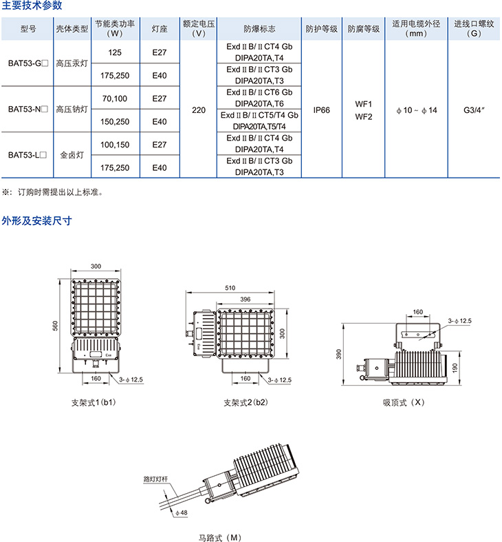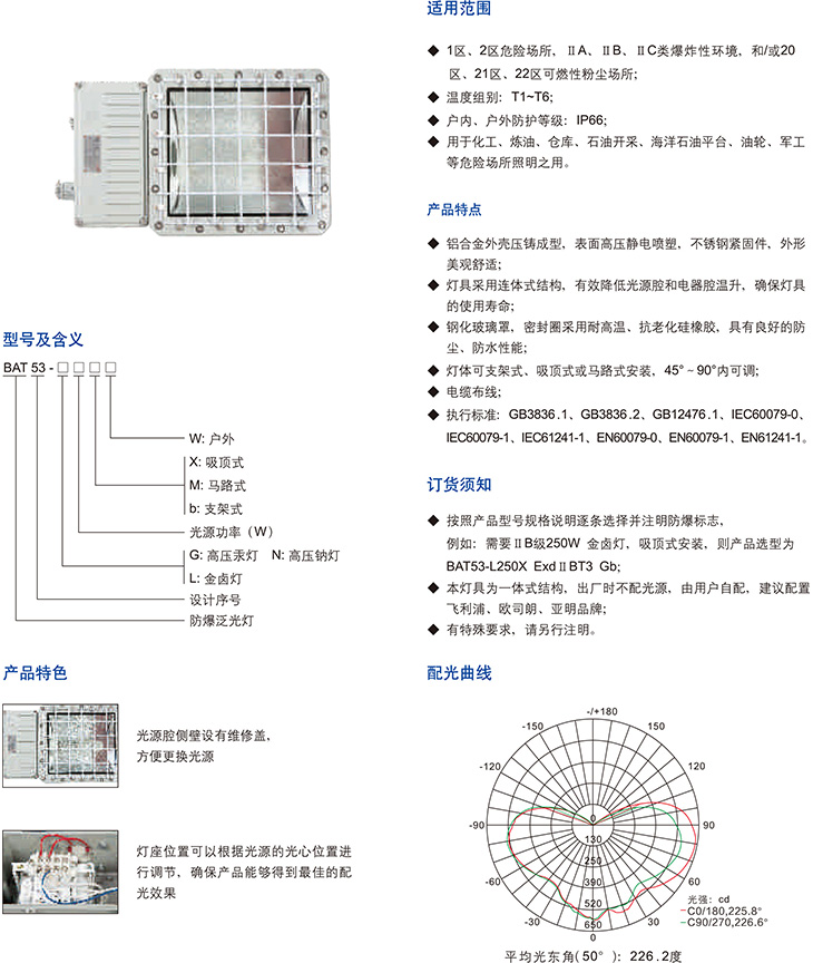 產品中心 防爆燈具 BAT53系列防爆泛光燈(ⅡB、ⅡC、DIP)