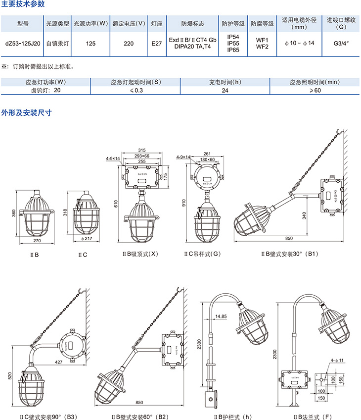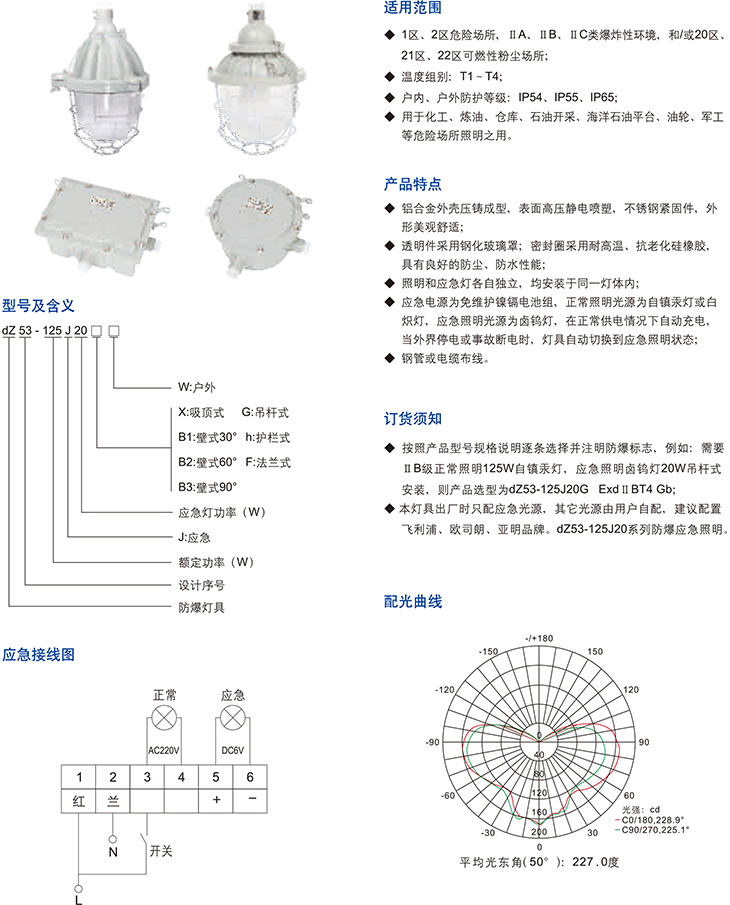 服務(wù)熱線:18368700777 產(chǎn)品中心 防爆燈具 dZ53-125J20系列防爆應(yīng)急照明兩用燈(ⅡB、ⅡC、DIP)