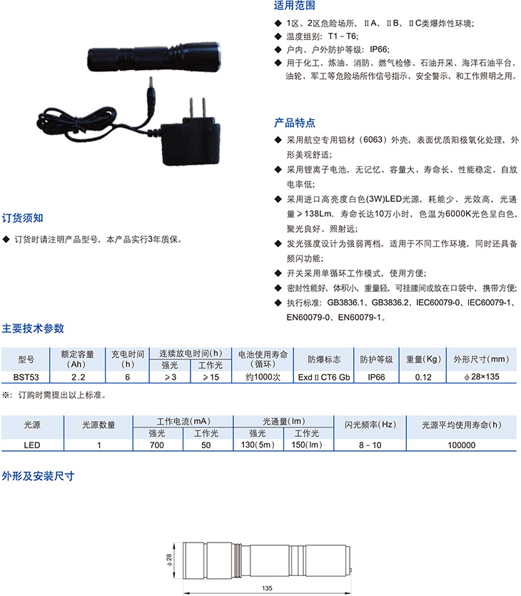 產品中心 防爆燈具 BST53系列防爆手電筒(LED:3W)(ⅡC)
