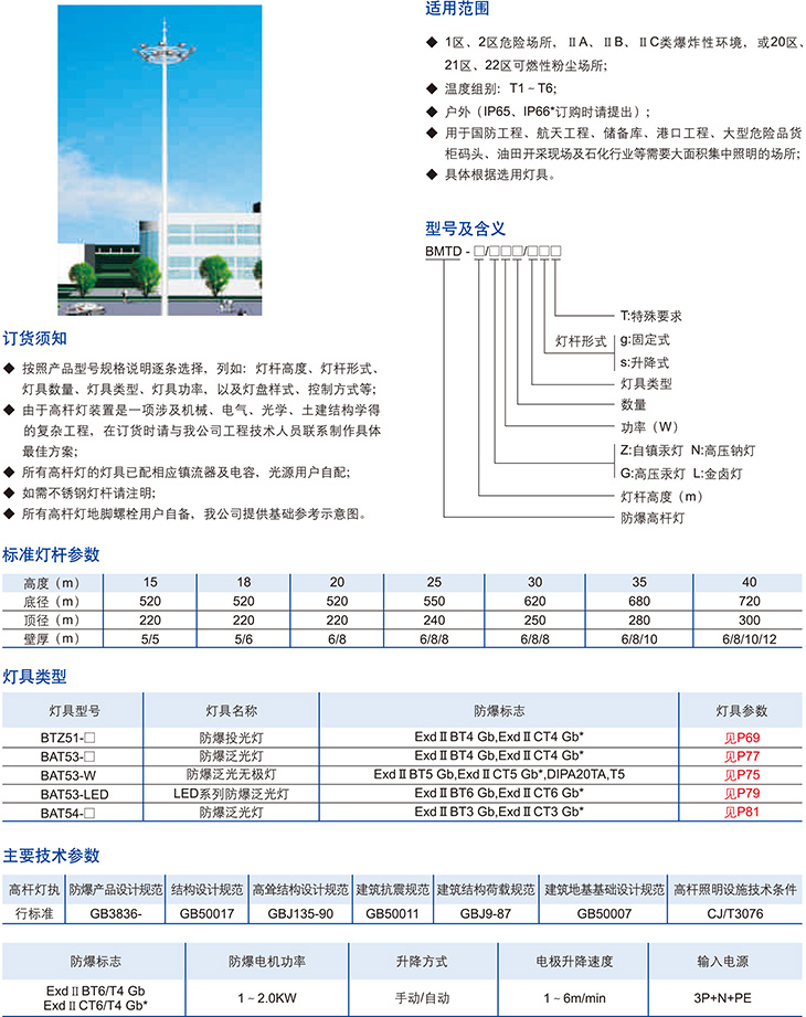 產品中心 防爆燈具 BMTD系列防爆高桿燈(ⅡB、ⅡC、DIP)