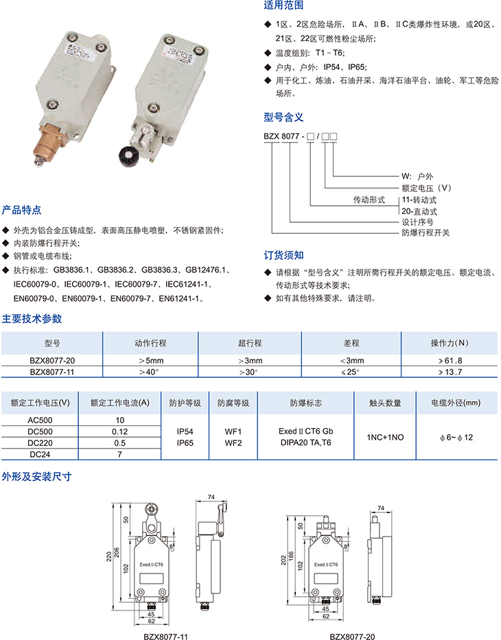 服務(wù)熱線:18368700777 產(chǎn)品中心 防爆配電箱 BZX8077系列防爆行程開關(guān)(ⅡC、DIP)