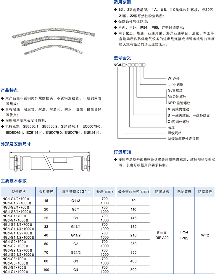NGd-Ⅱ系列防爆防腐撓性連接管(不銹鋼)(dⅡ、DIP)