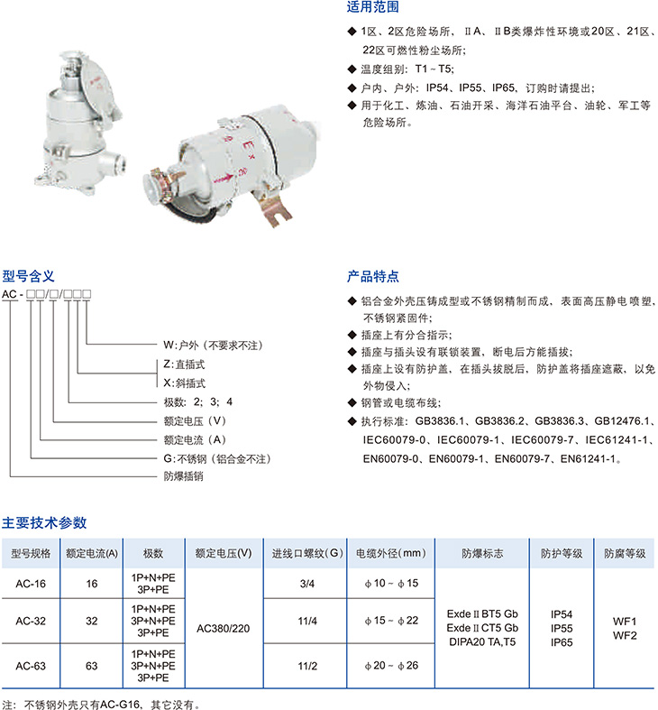 產品中心 防爆其他 AC系列防爆插銷(ⅡB、ⅡC、DIP)