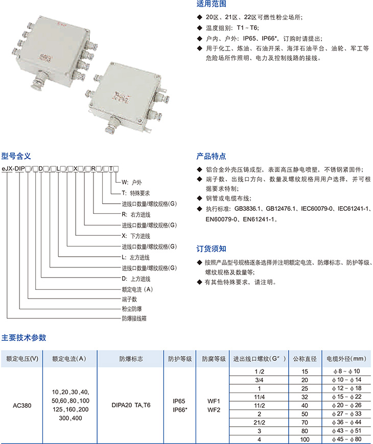 產品中心 粉塵防爆電器 eJX-DIP系列粉塵防爆接線箱