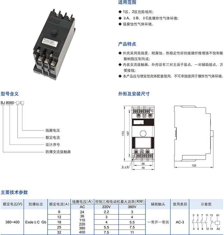 產品中心 防爆元件 BJ8060系列防爆交流接觸器模塊(ⅡC)