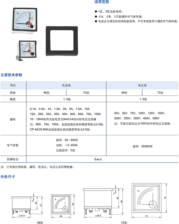 產品中心 防爆元件 CP-48/72系列防爆電流表/電壓表(e)