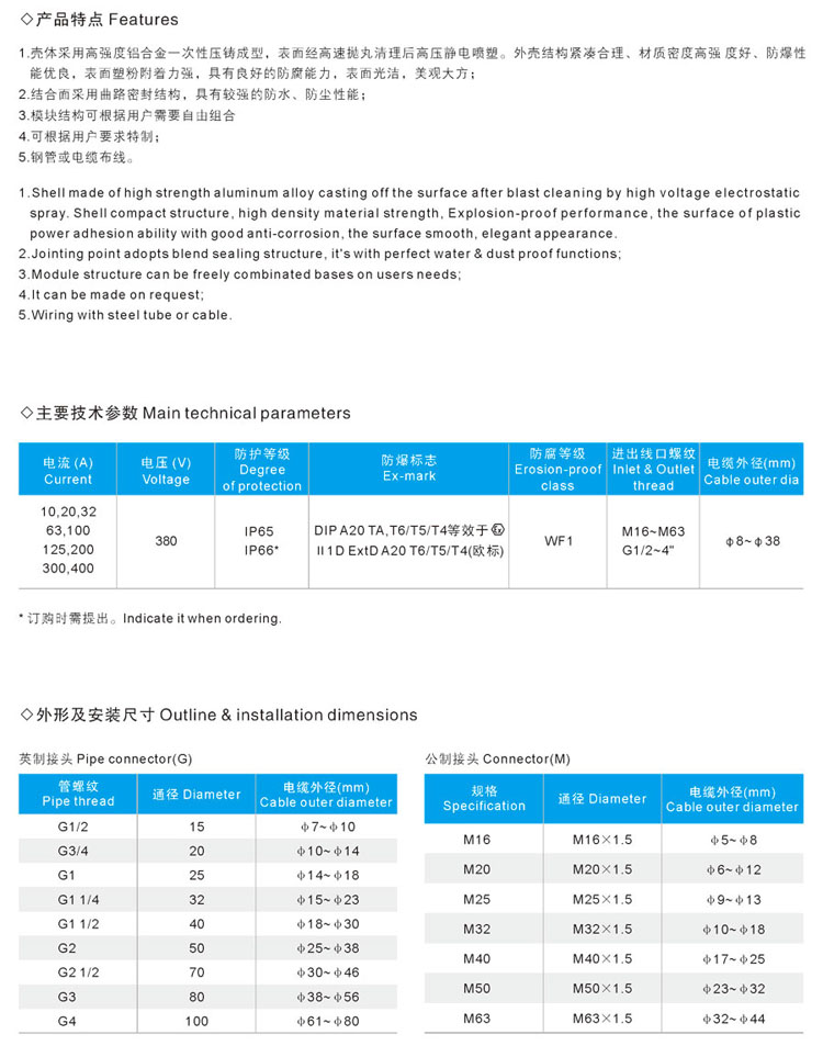 產品中心 防爆接線箱 BXJ-F系列粉塵防爆接線箱(DIP)