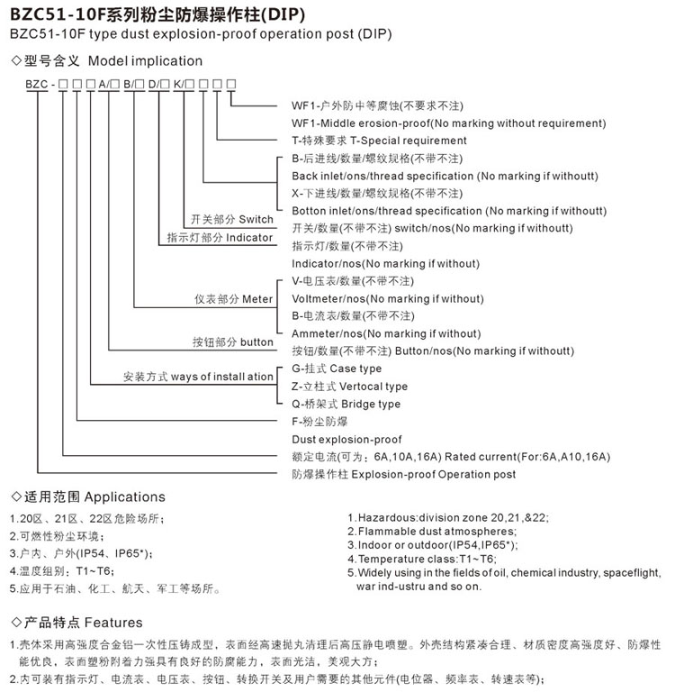 產品中心 防爆操作柱 BZC51-10F系列粉塵防爆操作柱(DIP)