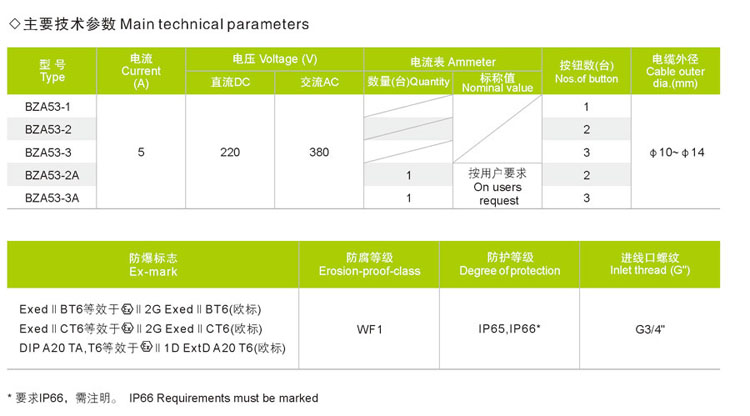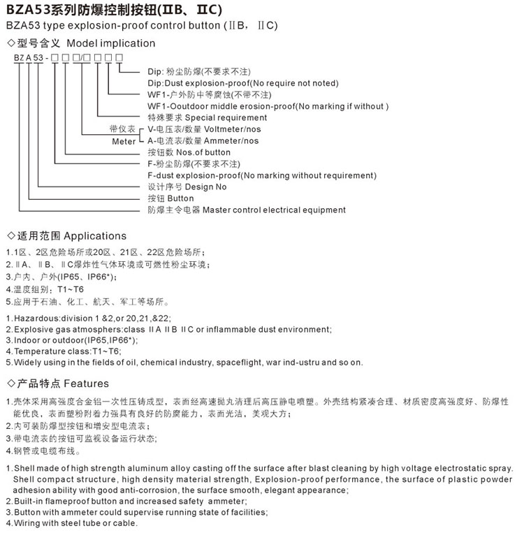 產品中心 防爆操作柱 BZA53系列防爆控制按鈕(IIB、IIC)
