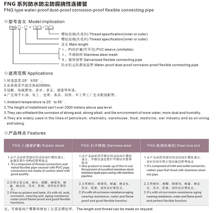 服務(wù)熱線:18368700777 產(chǎn)品中心 防爆管件 FNG系列防水防塵防腐撓性連接管 防護(hù)等級(jí):IP65