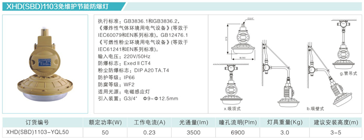 服務熱線:18368700777 產品中心 防爆免維護節能無極燈 XHD(SBD)1103免維護節能防爆燈