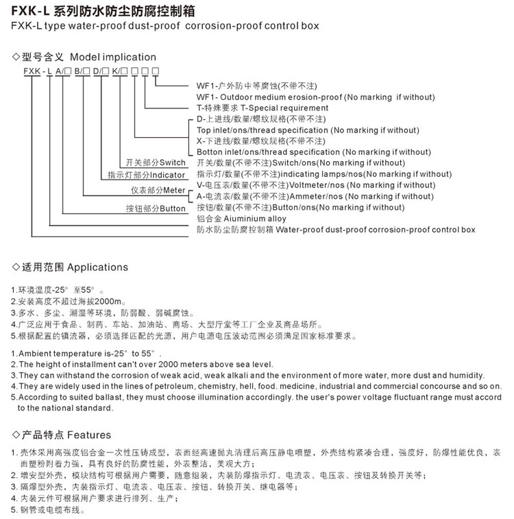 服務(wù)熱線:18368700777 產(chǎn)品中心 三防控制箱 FXK-L系列防水防塵防腐控制箱