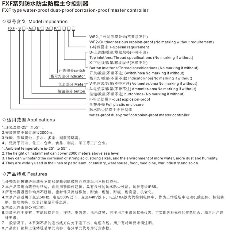 產品中心 三防控制箱 FXF系列防水防塵防腐主令控制器 防護等級:IP65