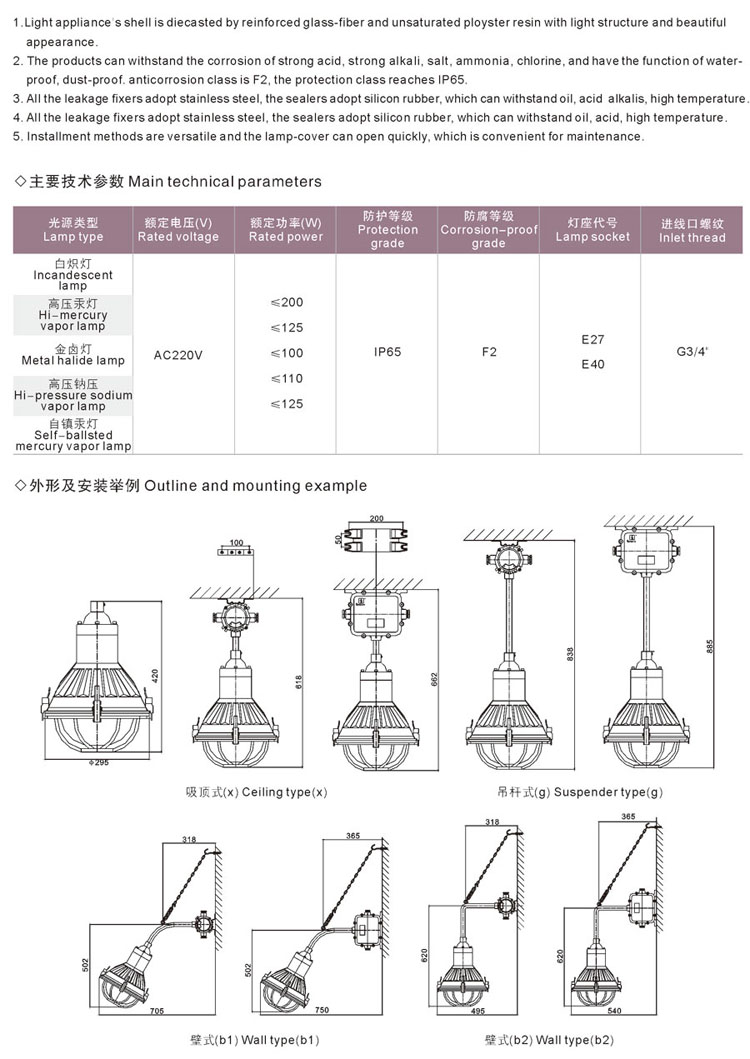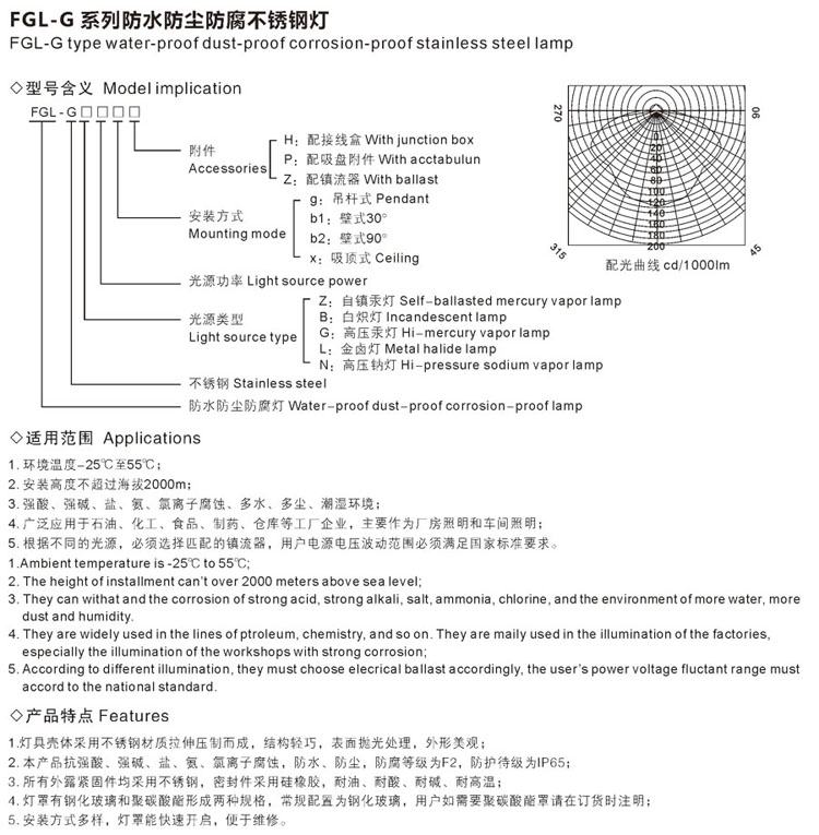 FGL-G系列防水防塵防腐不銹鋼燈 防護等級:IP65
