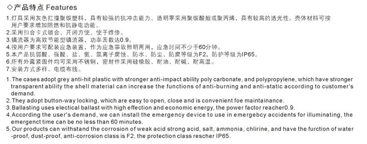 產品中心 三防控制箱 防水防塵防腐全塑熒光燈 防護等級:IP65