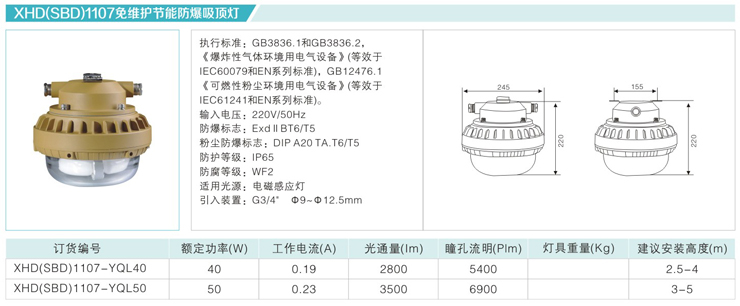 服務熱線:18368700777 產品中心 防爆免維護節能無極燈 XHD(SBD)1107免維護節能防爆吸頂燈