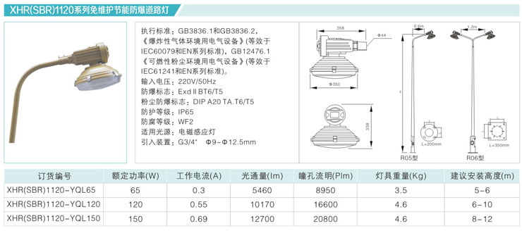 服務熱線:18368700777 產品中心 防爆免維護節能無極燈 XHR(SBR)1120系列免維護節能防爆道路燈
