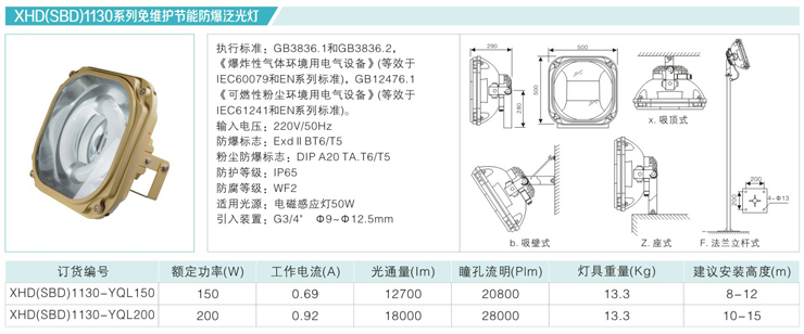 服務熱線:18368700777 產品中心 防爆免維護節能無極燈 XHD(SBD)1130系列免維護節能防爆泛光燈
