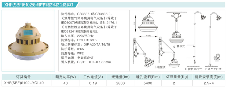 服務熱線:18368700777 產品中心 防爆免維護節能無極燈 XHF(SBF)6102免維護節能防水防塵防腐燈