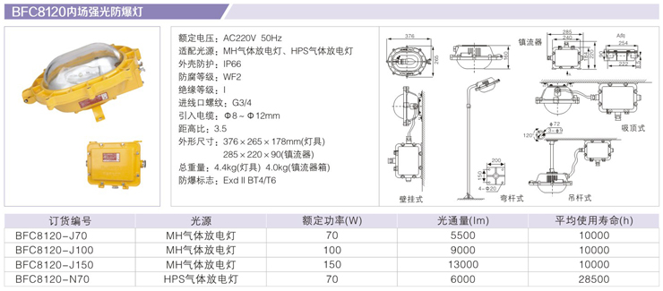 服務熱線:18368700777 產(chǎn)品中心 固定式防爆燈 BFC8120內(nèi)場強光防爆燈