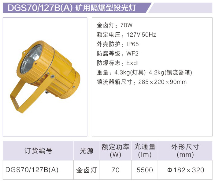 服務(wù)熱線:18368700777 產(chǎn)品中心 固定式防爆燈 DGS70/127B(A)礦用隔爆型投光燈